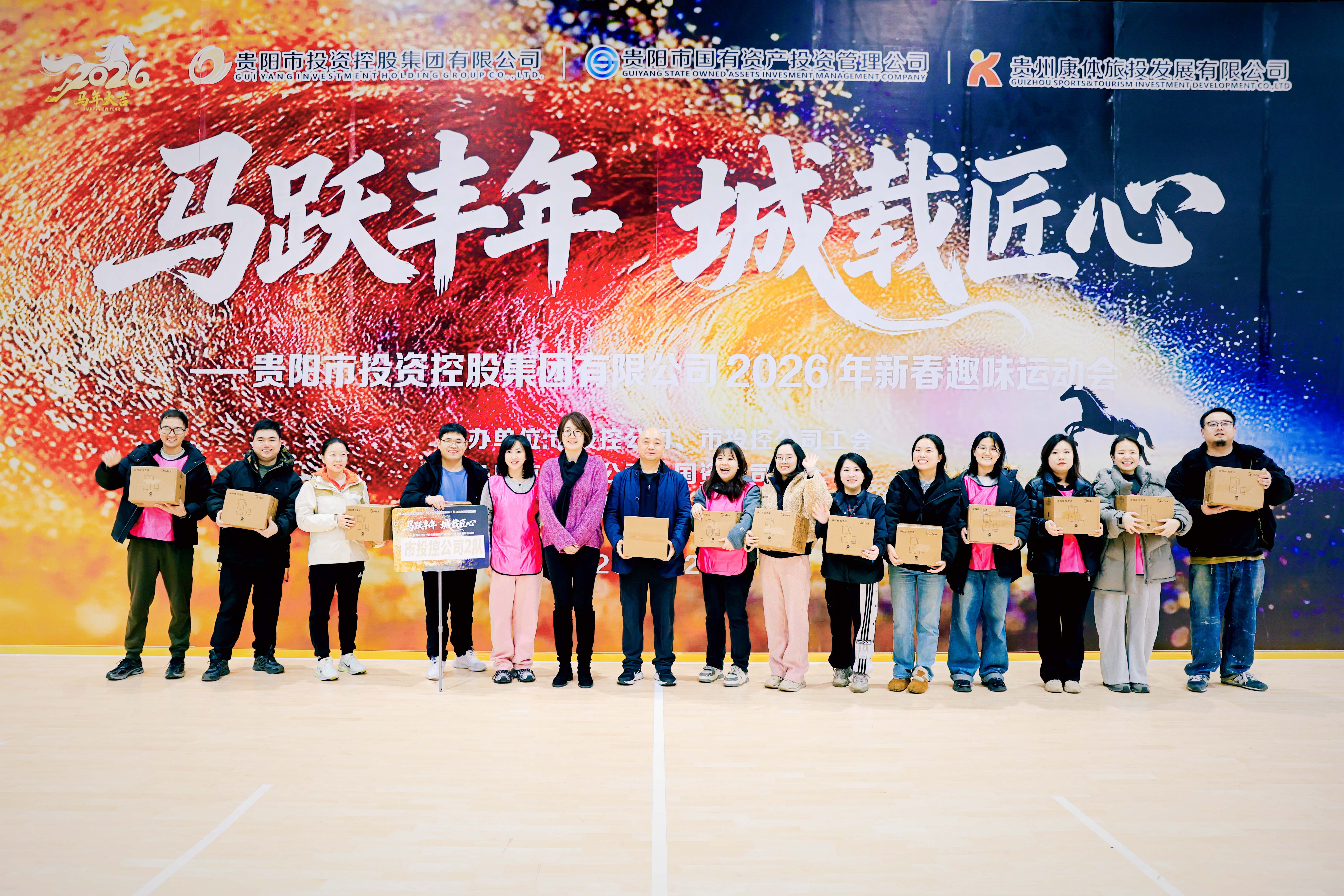 春回大地,万象竞发。2月11日,由市投控公司、市投控公司工会主办,国资公司、国资公司工会承办,康体公司执行的市投控公司“马跃丰年 城载匠心”新春趣味运动会在黔灵山体育公园篮球馆火热举行。市投控公司领导班子、市投控公司及下属子公司干部职工代表欢聚一堂,以趣味运动迎接新春,以团队协作凝聚合力,共赴一场年味浓郁、活力迸发的新春之约。