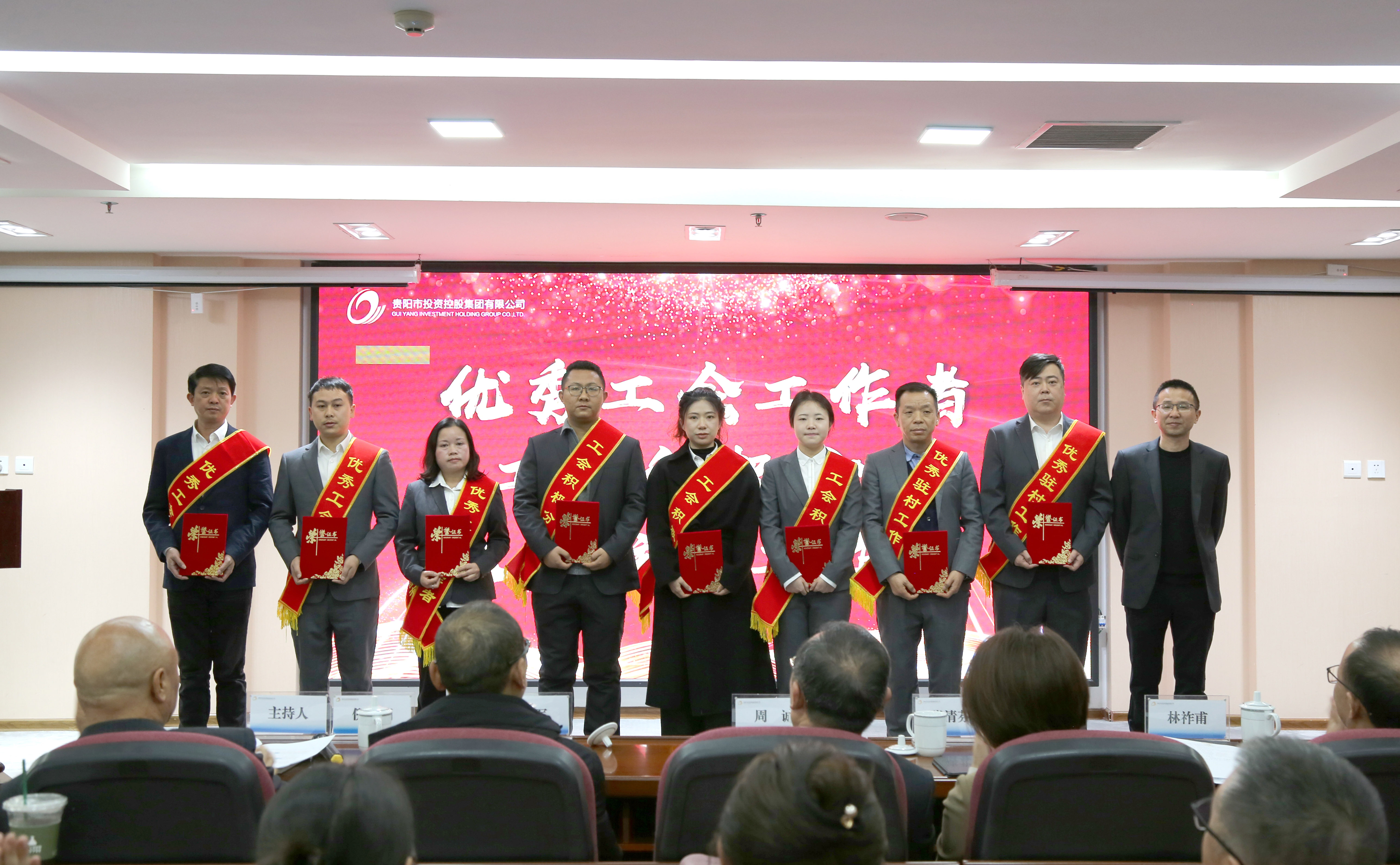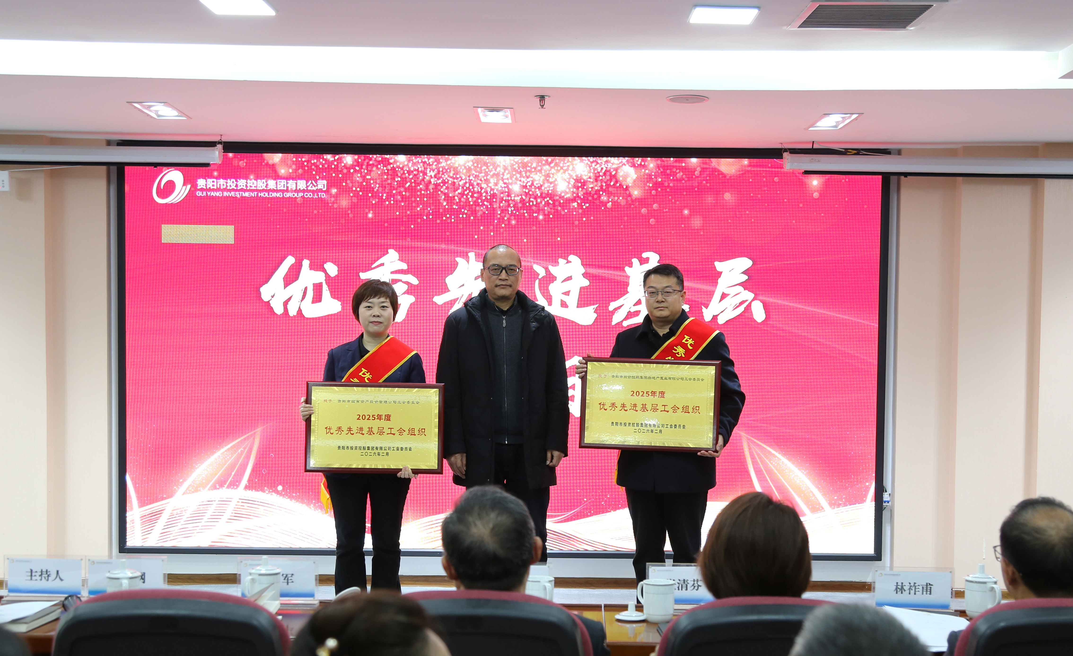 会议现场,还对市投控公司2025年度先进集体和个人、2025年度优秀先进基层工会组织和个人、优秀驻村工作者进行了表彰,受表彰人员代表作工作分享,全体与会人员集中观看了公司2025年度回顾视频。