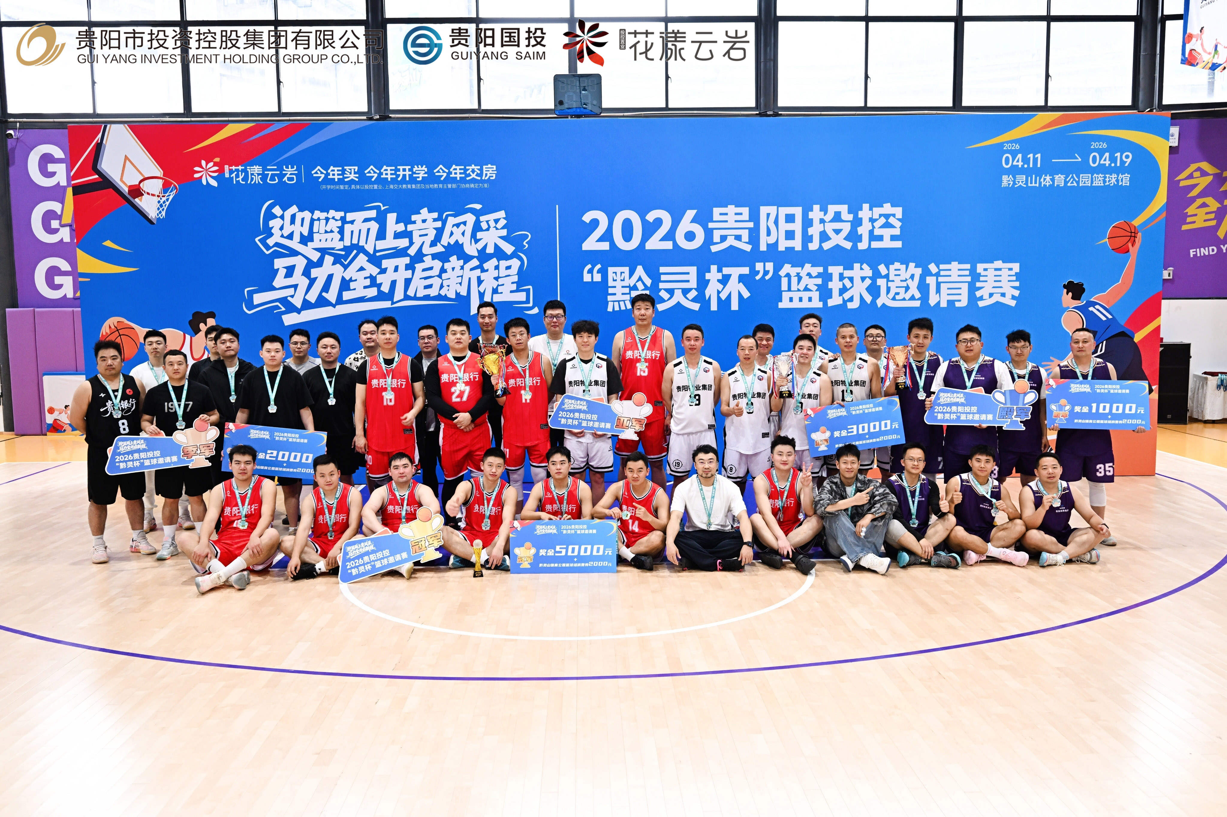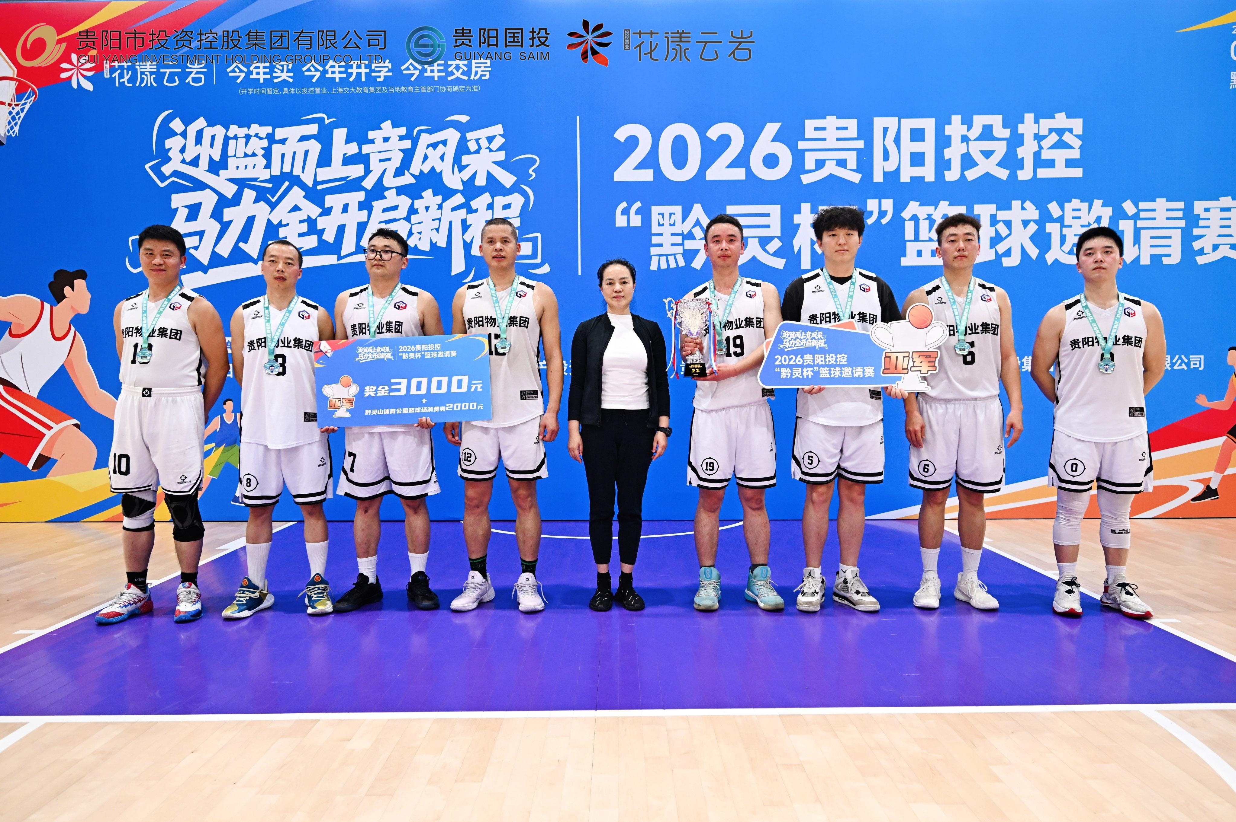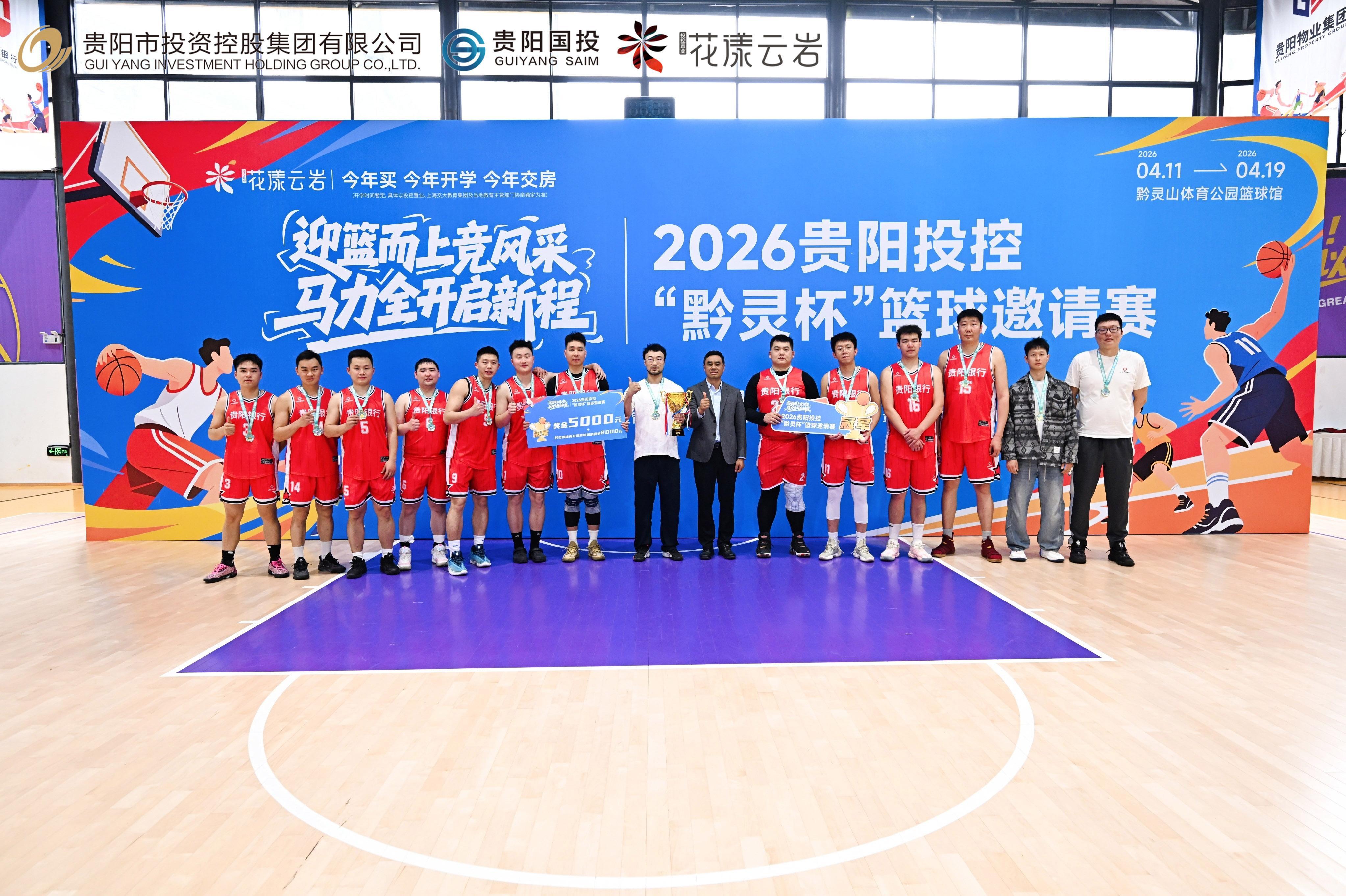 4月19日,2026贵阳投控“黔灵杯”篮球邀请赛在贵阳黔灵山体育公园篮球馆顺利闭幕。贵阳市城市发展投资集团股份有限公司党委副书记、总经理付洪伟,贵阳市物业集团党委书记、董事长杨彪,市投控公司党委副书记、工会主席倪成钢,贵州银行贵阳分行党委办公室主任李虹,贵阳银行党委组织部部长鲁统华出席颁奖仪式,并为获奖队伍颁发奖杯。随后,赛事在全场热烈的掌声中宣布闭幕,为本届赛事画上圆满句号。