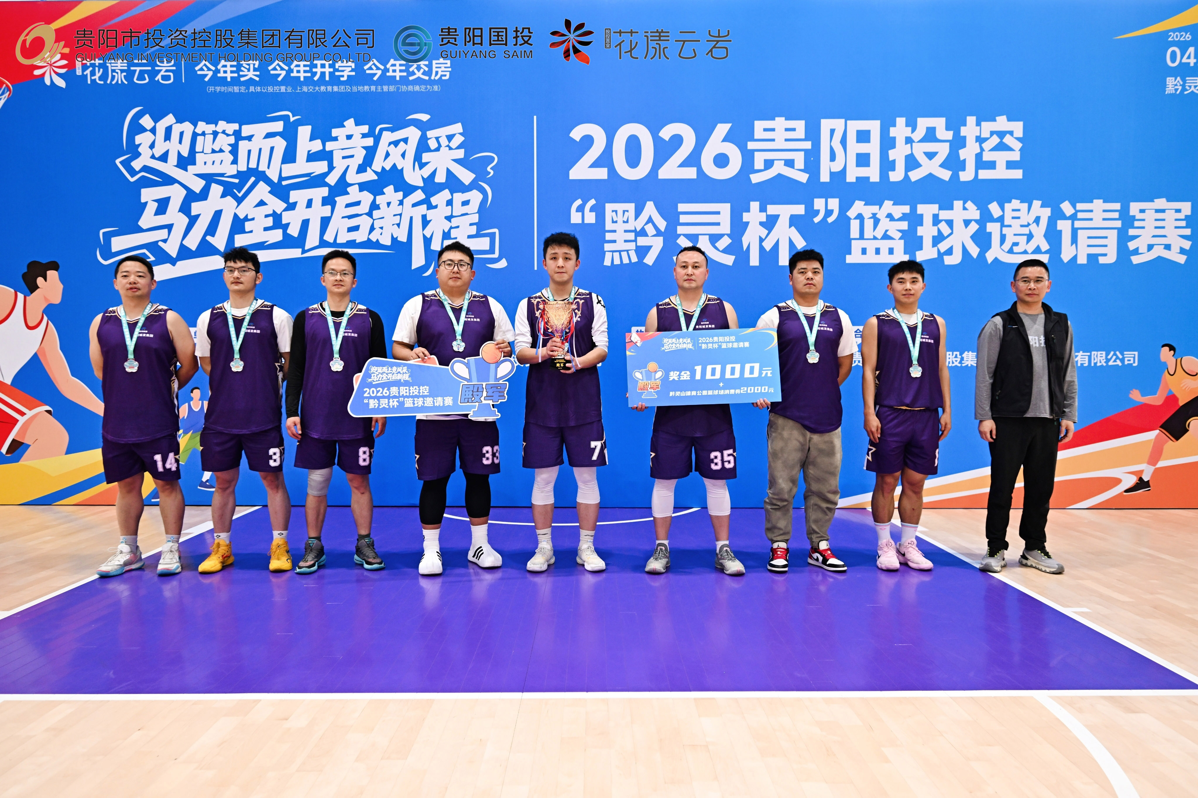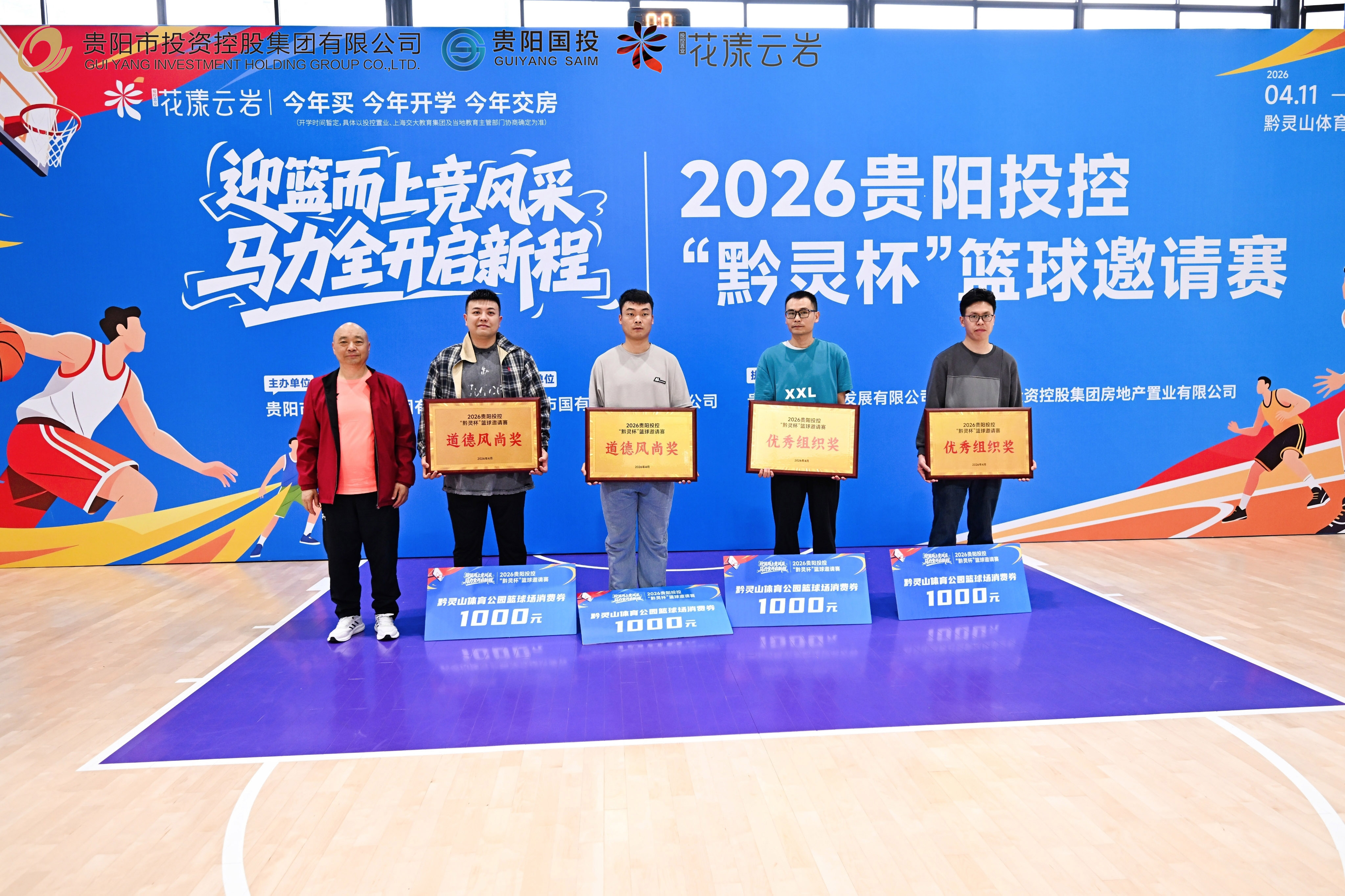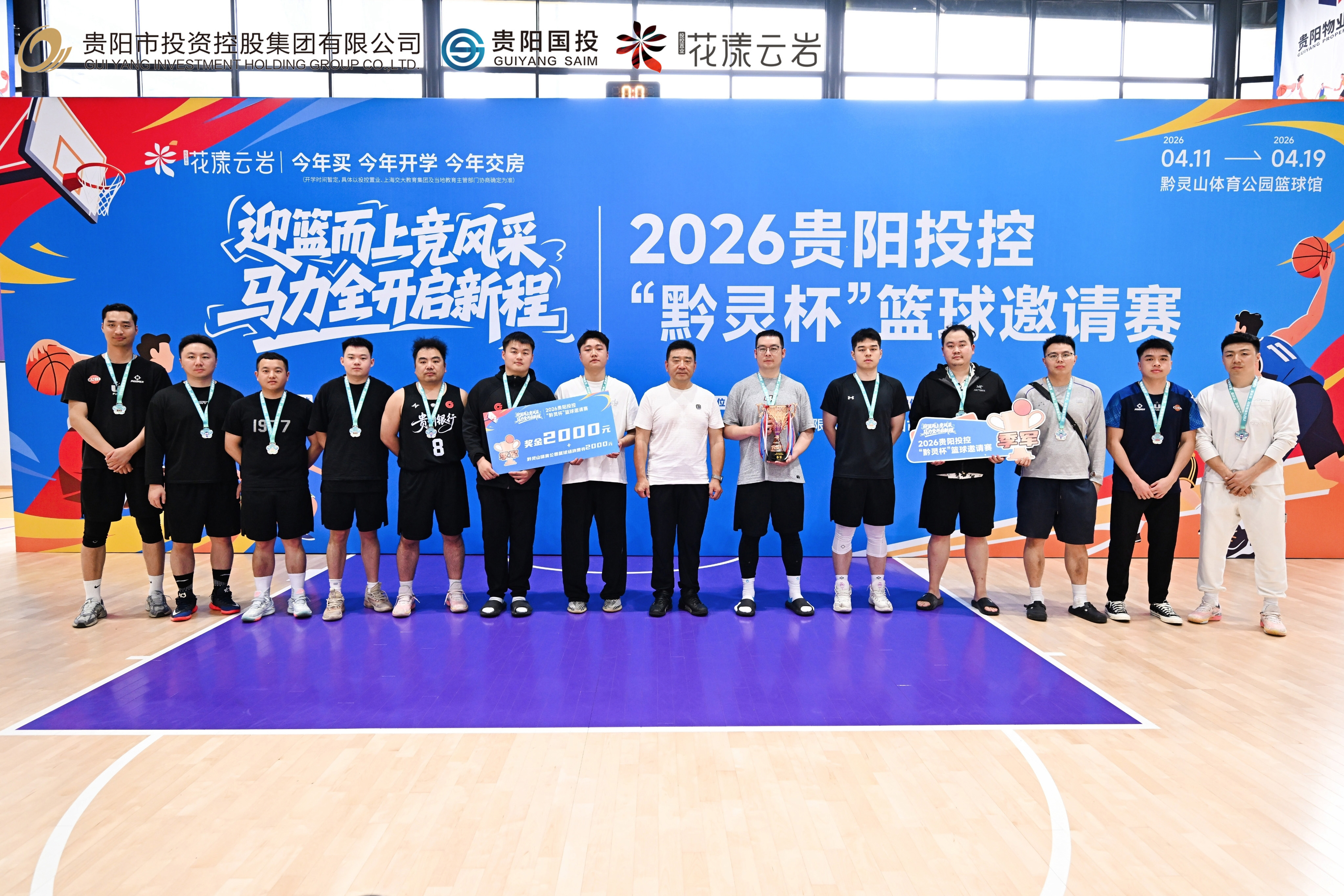 4月19日,2026贵阳投控“黔灵杯”篮球邀请赛在贵阳黔灵山体育公园篮球馆顺利闭幕。贵阳市城市发展投资集团股份有限公司党委副书记、总经理付洪伟,贵阳市物业集团党委书记、董事长杨彪,市投控公司党委副书记、工会主席倪成钢,贵州银行贵阳分行党委办公室主任李虹,贵阳银行党委组织部部长鲁统华出席颁奖仪式,并为获奖队伍颁发奖杯。随后,赛事在全场热烈的掌声中宣布闭幕,为本届赛事画上圆满句号。