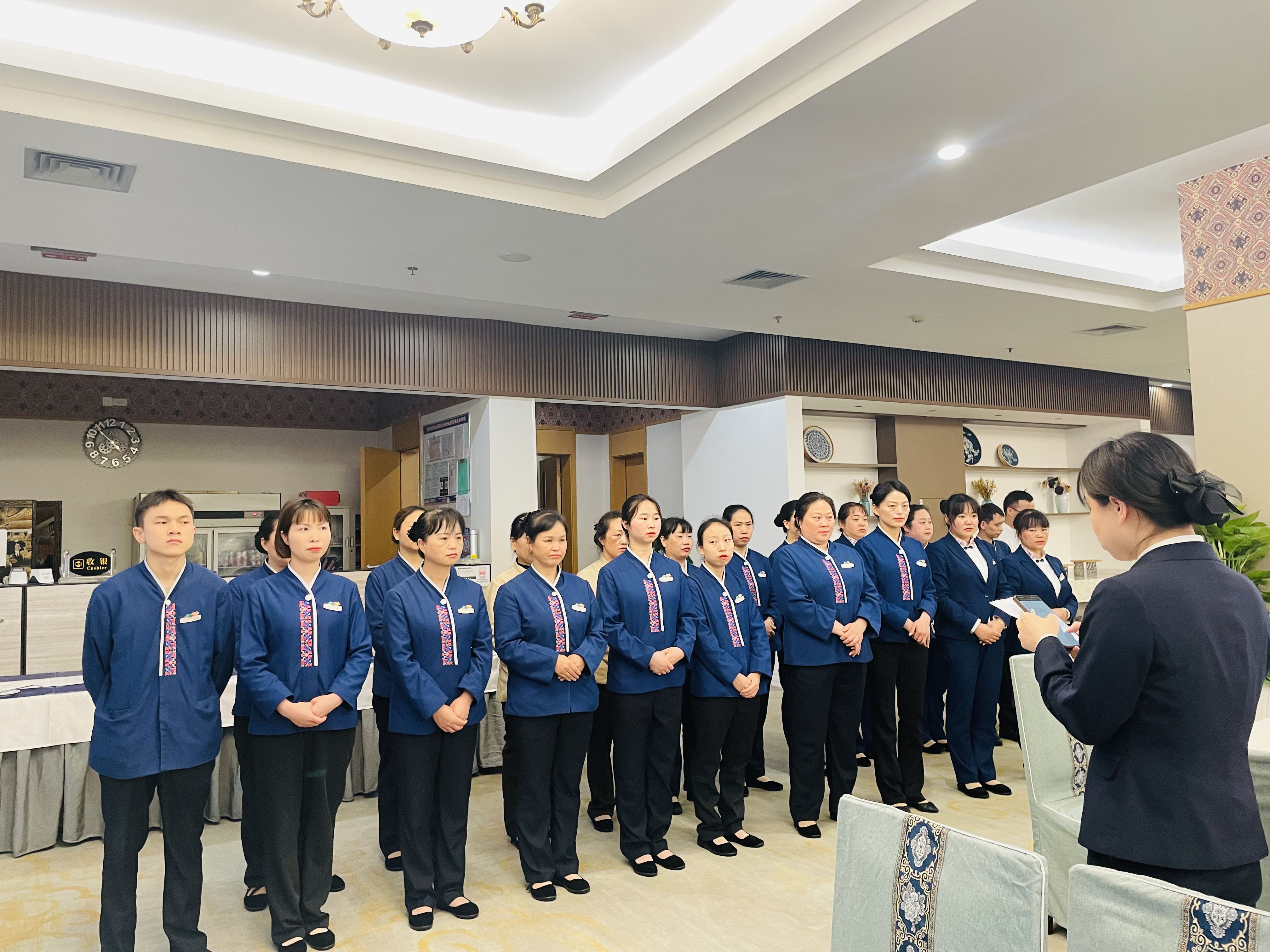 夯实团队能力,筑牢服务品质根基。金阳大酒店深知,优质服务的核心竞争力在于人。为此,酒店启动“服务品质提升专项行动”,围绕前厅接待、客房服务、餐饮出品、会议保障等全岗位流程,开展全方位、系统化的团队赋能。一方面,细化服务标准,明确从宾客到店问候、行程咨询、入住办理,再到入住期间需求响应、离店送别等全环节服务规范,实现服务流程的标准化与精细化。另一方面,强化专业培训,今年以来开展销售工作专业知识、会议服务技巧等内训、外训课程共11次,显著提升团队应对政务商务需求的专业能力。在餐饮团队建设上,组织厨师团队深入学习黔菜传统技艺,结合现代健康烹饪理念开展菜品创新研发,确保特色黔菜品质稳定且持续升级。同时,通过团建活动、技能竞赛等举措,强化团队凝聚力与员工归属感,为酒店服务品质升级筑牢人才根基。