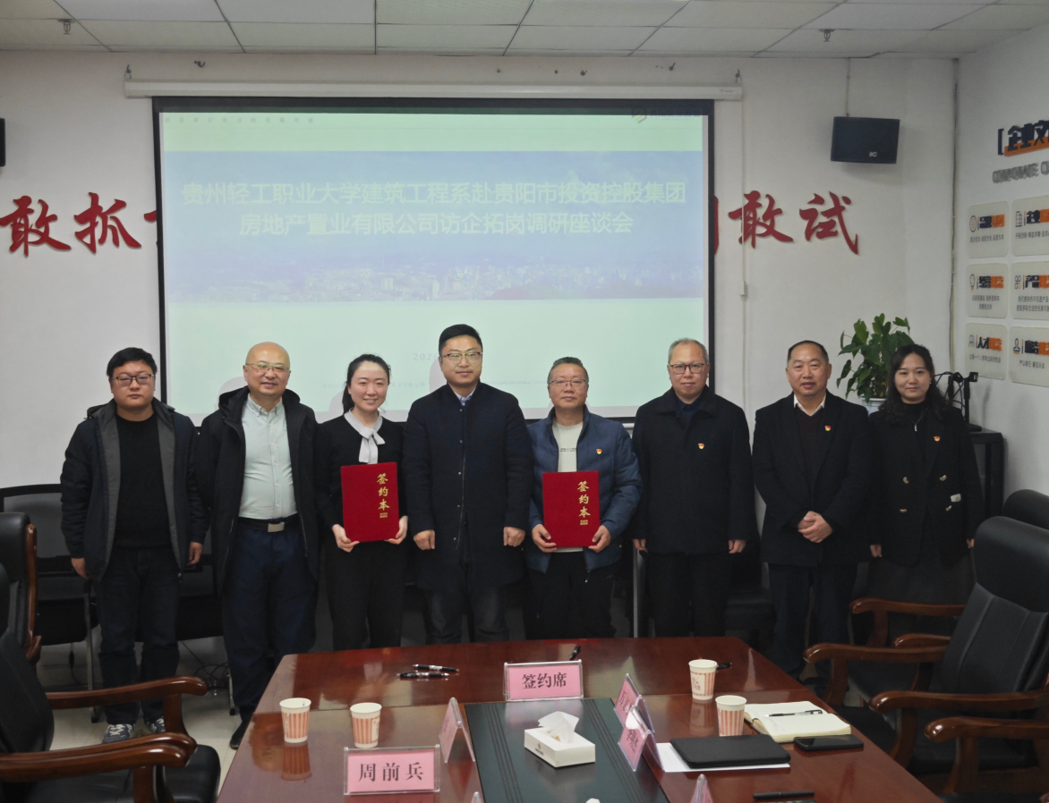 调研结束后,贵州轻工职业大学建筑工程系教工党支部与贵阳投控置业公司党支部召开座谈会并签署党建共建协议。双方以党建为引领,将在活动组织、阵地建设等方面深度合作,着力构建“产学研用”一体化协同机制。