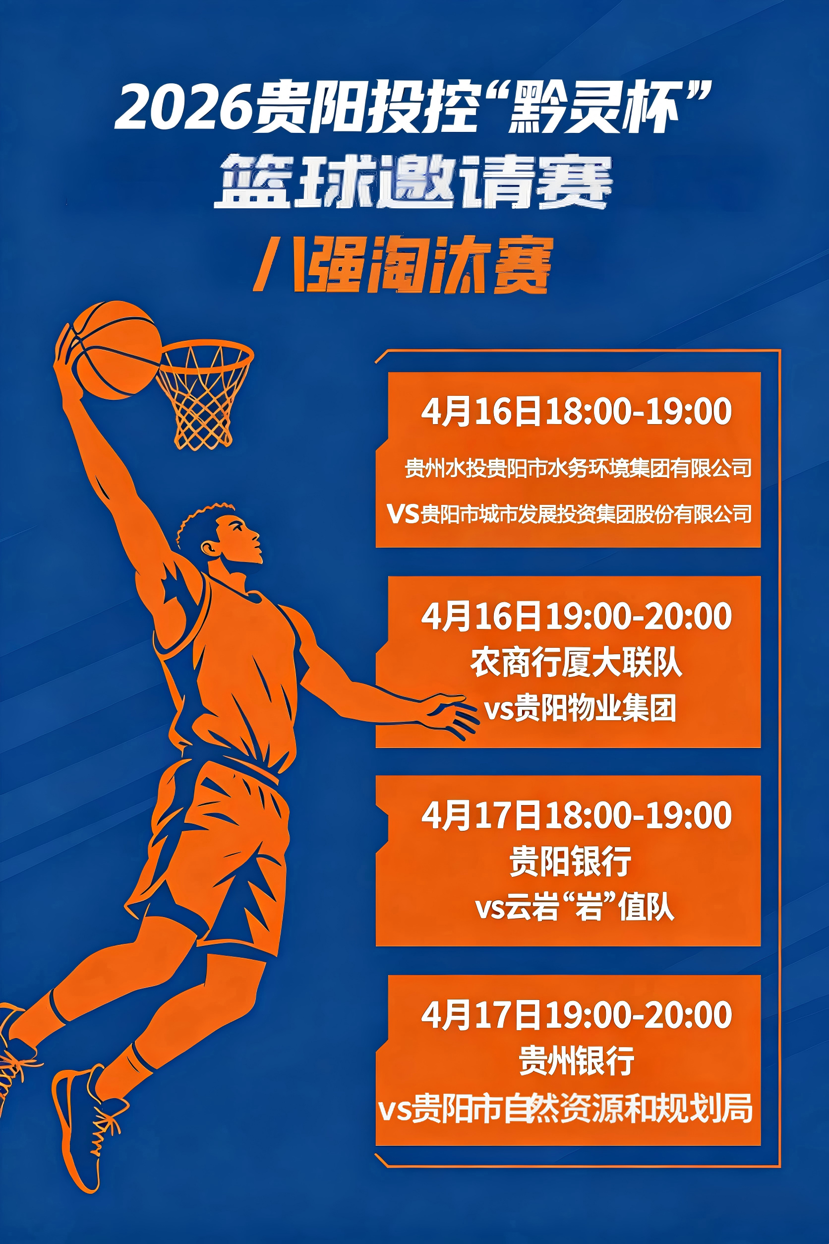 4月14日,随着小组赛最后一轮比赛哨声落下,2026贵阳投控“黔灵杯”篮球邀请赛小组赛阶段的比拼已收官。各支参赛队伍历经多轮激烈角逐,以球会友、以赛促练,最终8支队伍凭借稳定发挥与顽强拼搏成功突围,晋级本次赛事八强。
