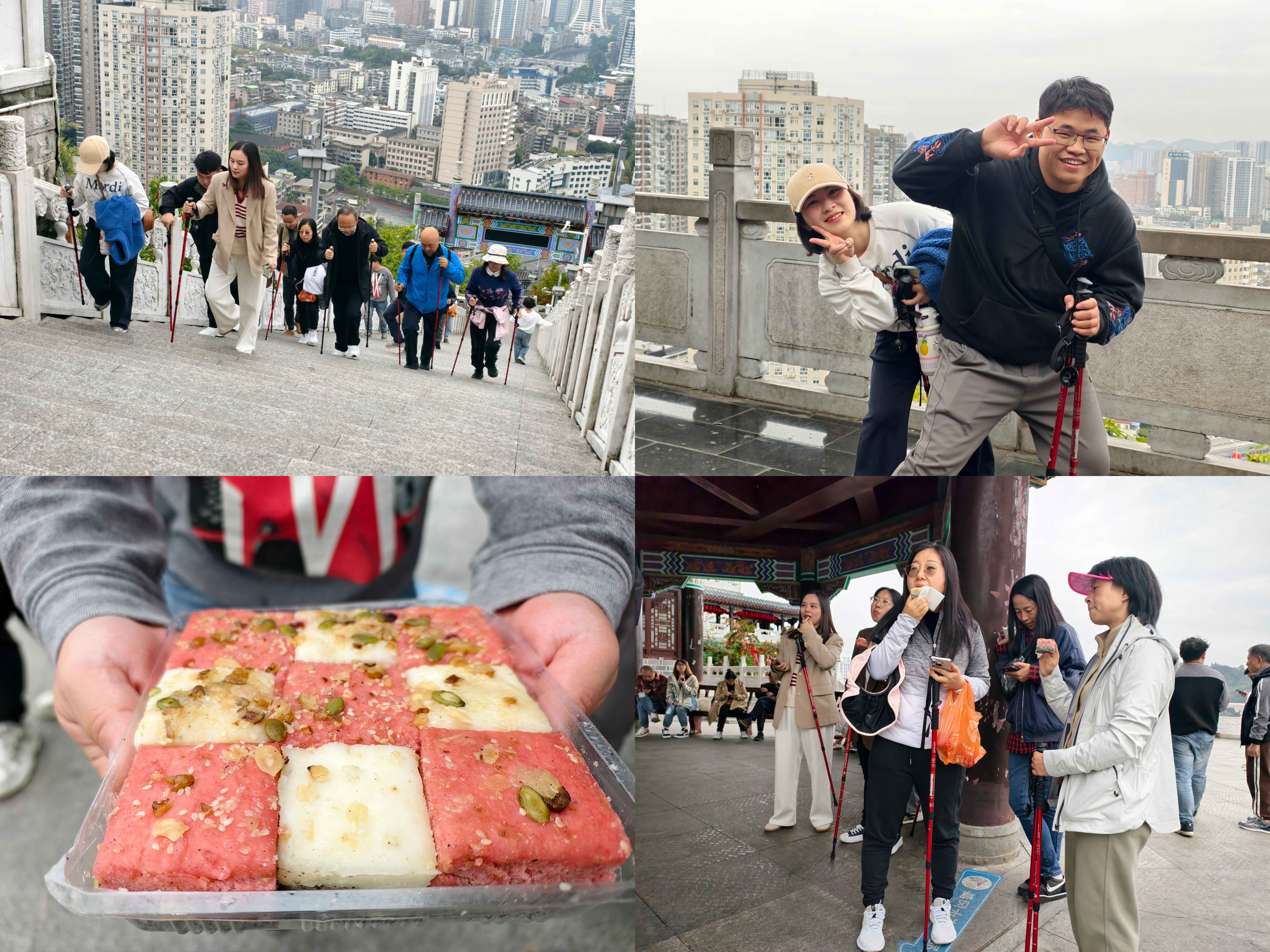 在全员共同努力下,大家陆续登顶,齐聚山顶观景台。工会工作人员为每位员工送上了寓意“步步登高、平安顺遂”的重阳糕。松软可口的糕点不仅甜在舌尖,更传递出节日的美好祝愿。随后开展的重阳节知识问答环节,气氛热烈,大家踊跃抢答,在轻松愉快的氛围中进一步加深了对传统文化的理解与认同,令重阳节的文化意蕴愈发浓郁。