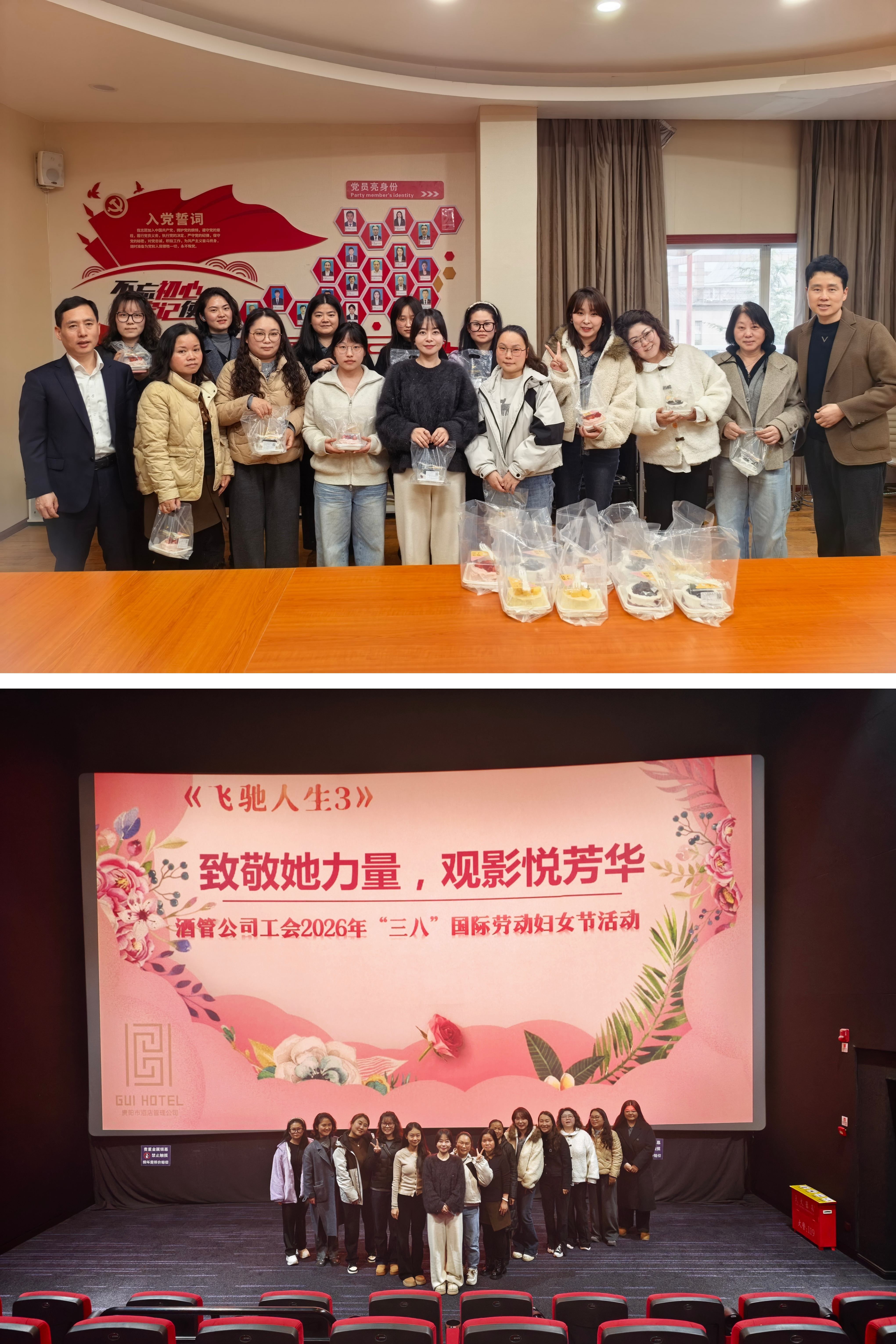 酒管公司工会精心组织全体女职工开展主题观影活动,致敬坚守岗位、绽放光彩的每一位“她”。活动中,酒管公司工会首先为女职工送上定制的节日蛋糕,以甜蜜传递关怀与温暖。随后大家共同观看影片《飞驰人生3》,在光影中放松身心、舒缓压力,从影片中汲取热爱与奋进的力量。此次活动让女职工们感受到了节日的喜悦与集体的温暖,进一步增强了团队凝聚力与向心力,女职工们将立足岗位、奋勇争先,以“巾帼不让须眉”的姿态为公司高质量发展贡献“她”力量。