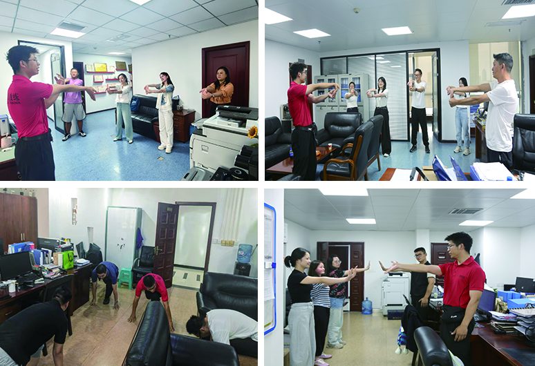 面对快节奏、高强度的职场生活,很多职工常常一坐一整天,身体处于“待机状态”。市投控公司紧盯职工健康痛点,把专业的健身教练请进办公室,通过“工位教学+团体课程”的形式,让健身锻炼融入职工之中,让员工不再发愁没空锻炼、不会动作,帮助职工缓解工作疲劳、预防职业疾病、提升运动积极性。